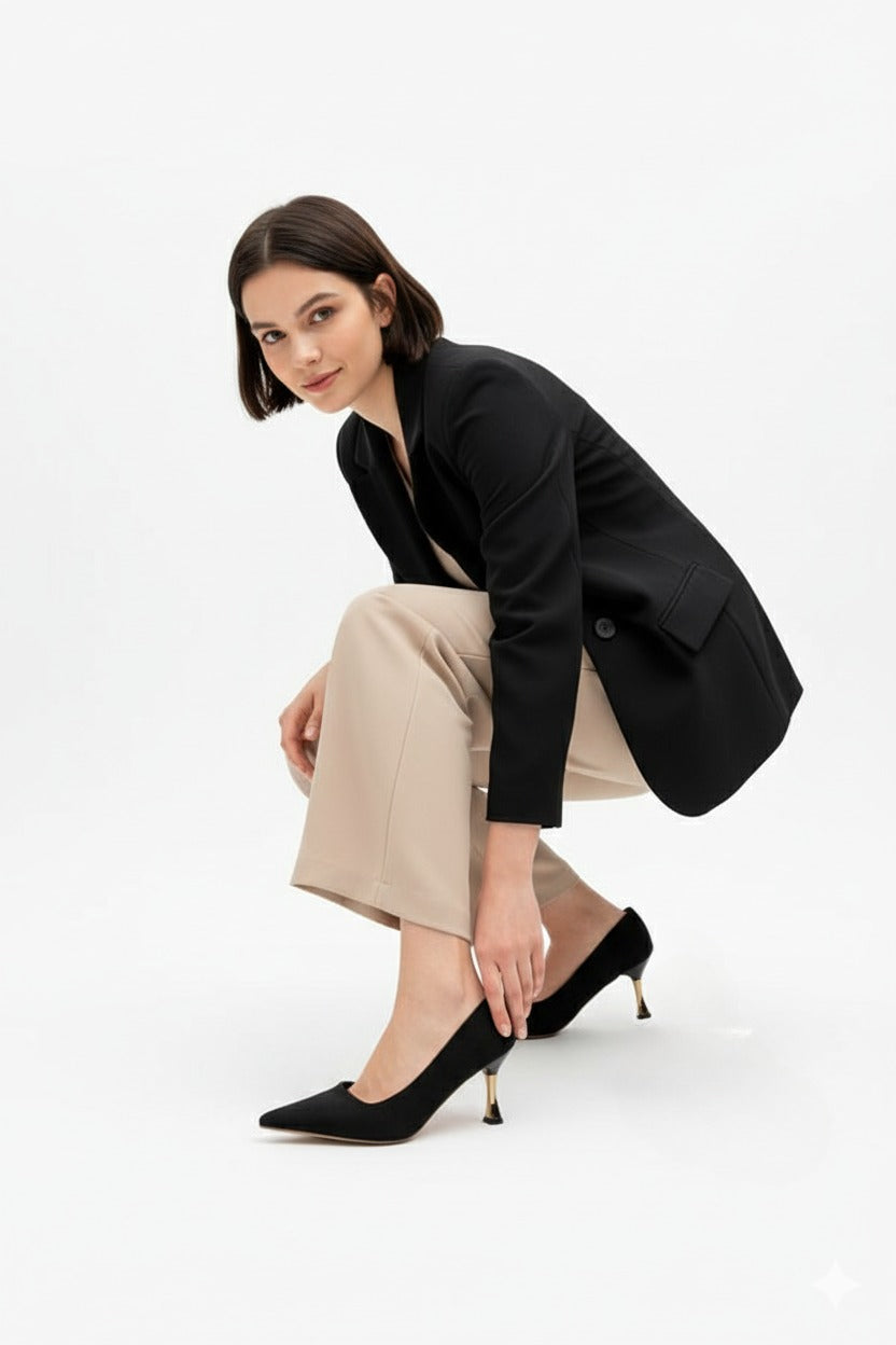 جزمة كعب بتصميم ناعم يوفر الراحة والأناقة في آن واحد، مثالية للمناسبات وايام العمل لتظهر بمظهر اكثر نعومةوجمال.